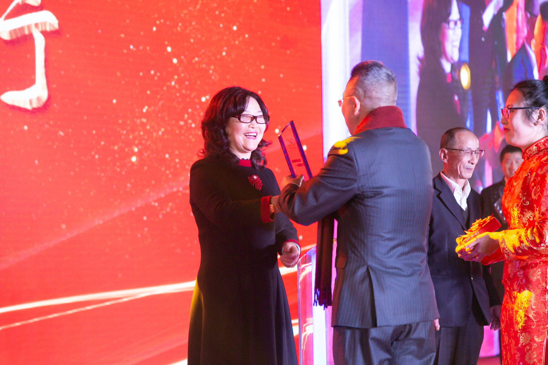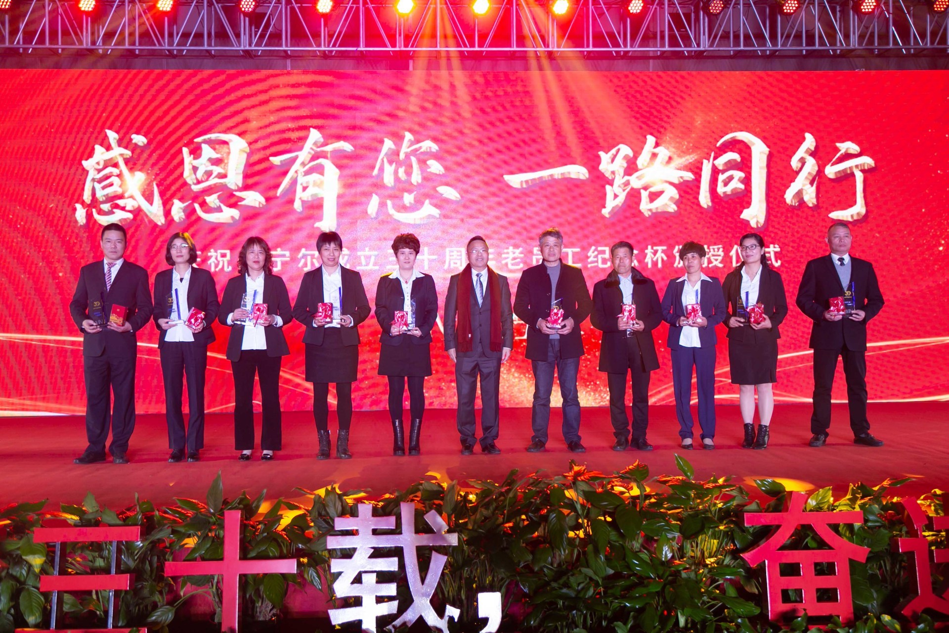 李咏水董事长向老员工颁授“宝马bm1122线路顶级集团建设三十周年”纪念杯和纪念品