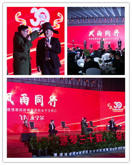 陪同着欢快的乐曲,,,来自江南世家药业公司的歌伴舞《红日》首先登场。。。。。紧接着,,,来之安吉基地的相声《三十而立》讴歌了宝马bm1122线路顶级的人和事;;《宝马bm1122线路顶级集团公司2020年十大新闻事务》再现2020年宝马bm1122线路顶级人“战疫”历程与公司一直逾越生长的历程全貌;;来自安吉基地的男声独唱《一经的你》引发对往事的留念与回忆;;集团总部的小品《风雨偕行》真挚的表达出灾祸与共的同仁之情;;来自杭州杂技总团的杂技《丰收·凉帽空竹》精湛武艺令人线人一新;;江南世家药业的《闪“药”时装秀》展示了药业公司医用防护新工业的辽阔远景;;最后,,,来自集团总部的大型歌舞《我们都是追梦人》展现出宝马bm1122线路顶级团队生气蓬勃、青春洋溢,,,执着追梦的时代精神,,,把晚会推向热潮。。。。。晚会进入尾声时,,,前排高管团队,,,戴着象征“火红的宝马bm1122线路顶级事业”的大红色围巾走上舞台,,,晚会在全场齐唱《难忘今宵》中落下帷幕。。。。。