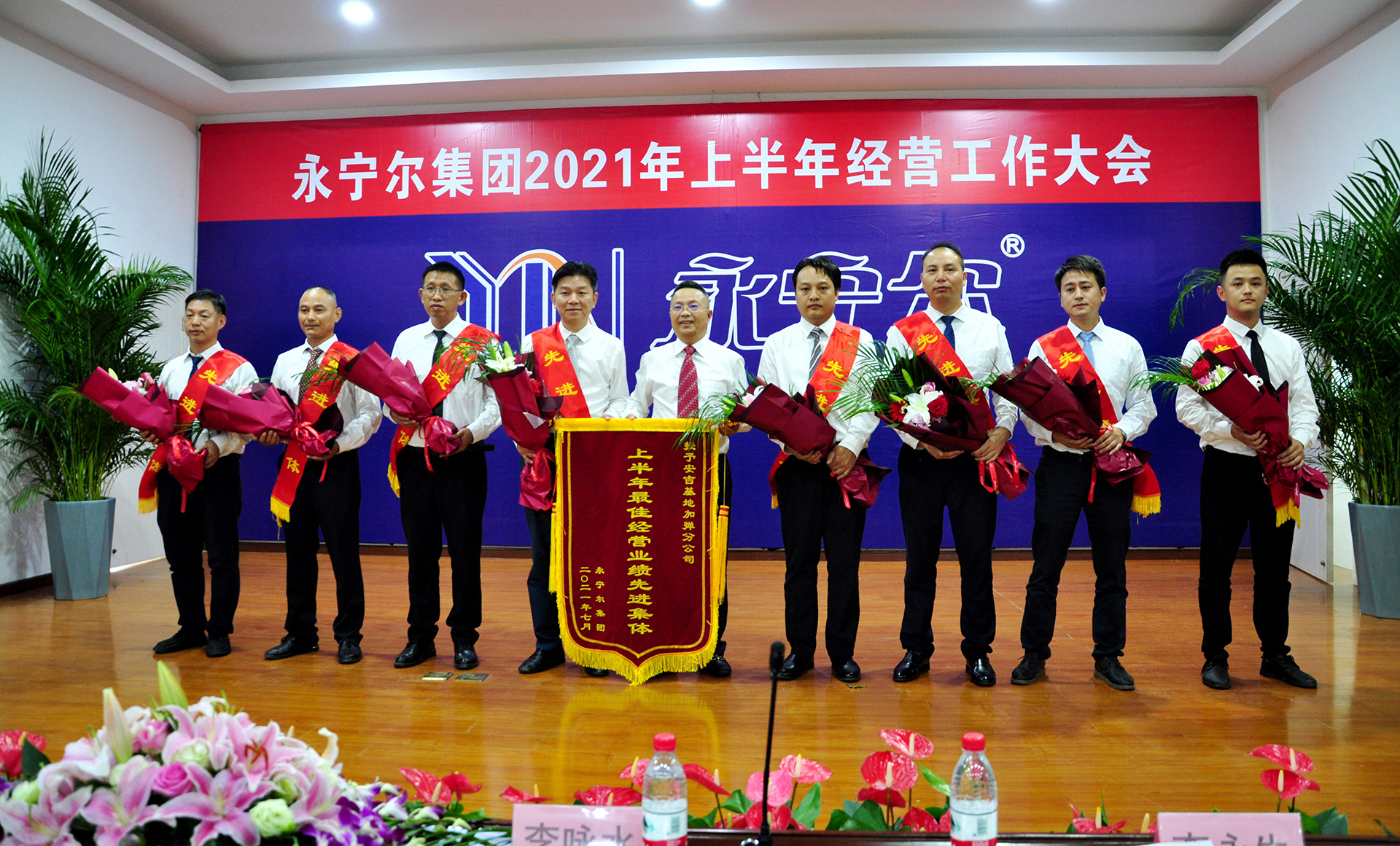李咏水董事长向先进整体颁授锦旗并与团队合影