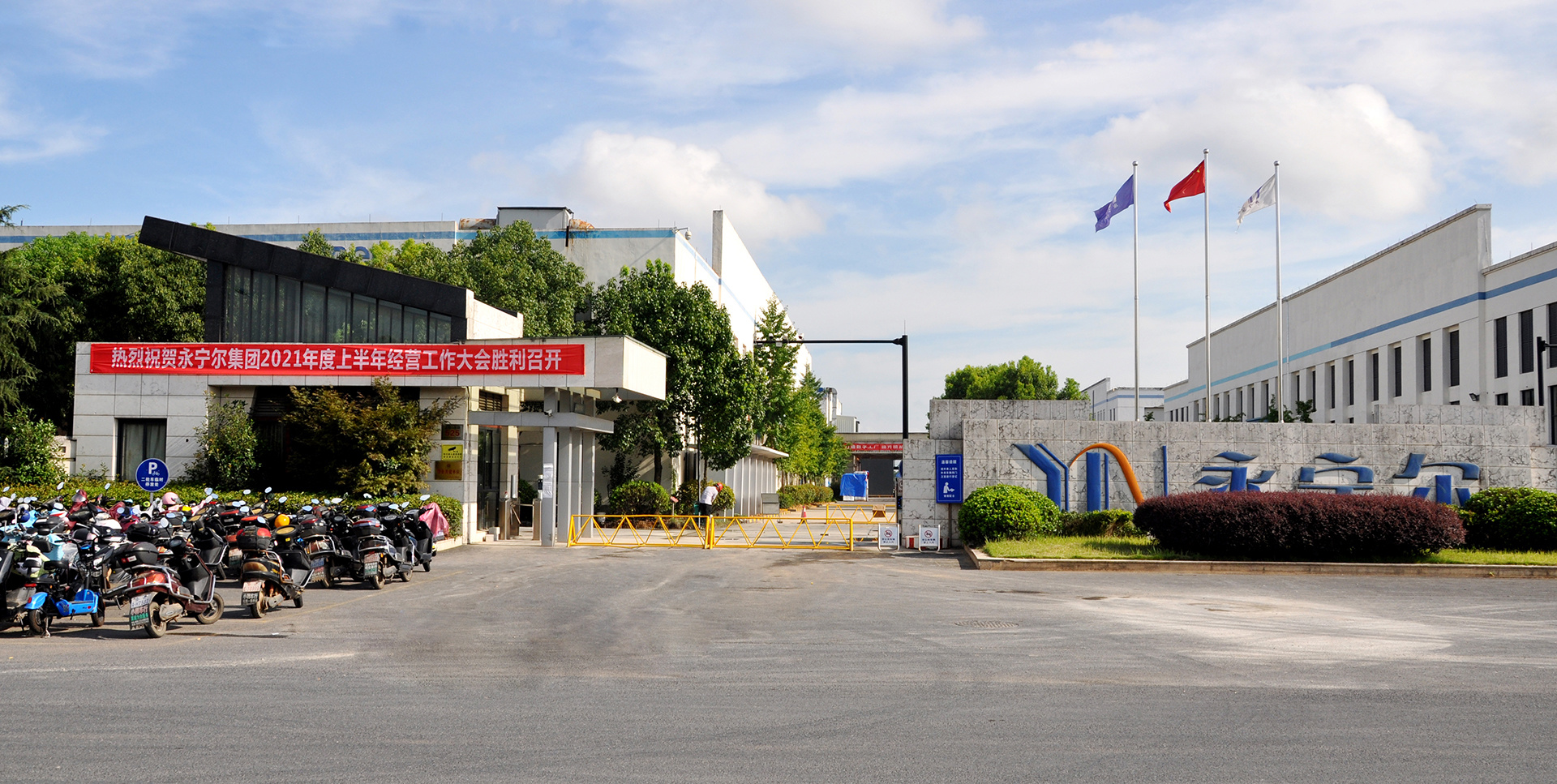 安吉基地行政办公楼辅楼悬挂的上半年度聚会宣传竖幅格外醒目