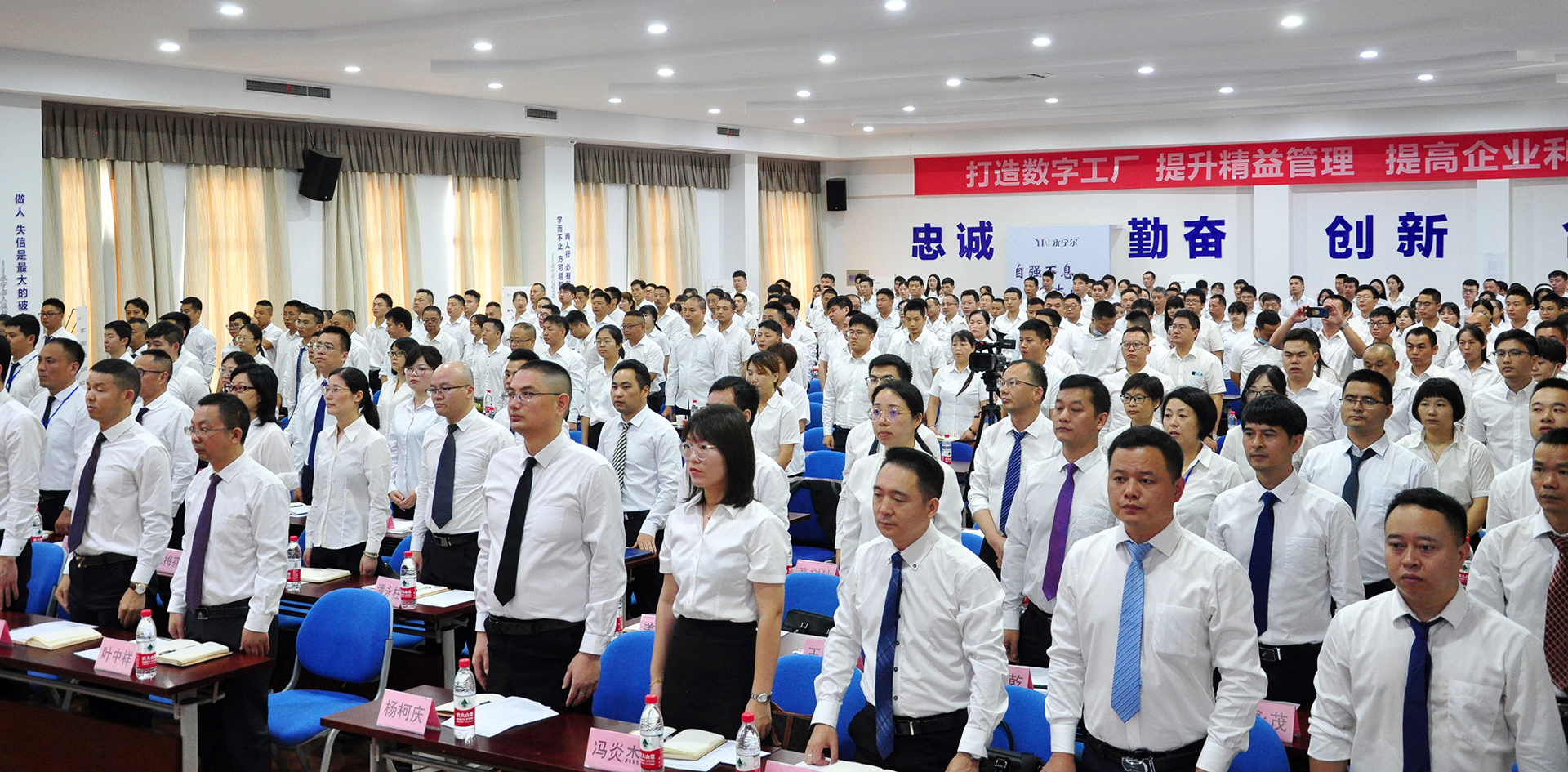 聚会在雄壮的国歌声与铿锵有力的团队训词朗诵声中拉开帷幕。。董事长李咏水博士作《 打造数字工厂 提升精益治理 提高企业利润》的主题事情报告。。大会由集团公司常务副总司理赵巍东主持。。