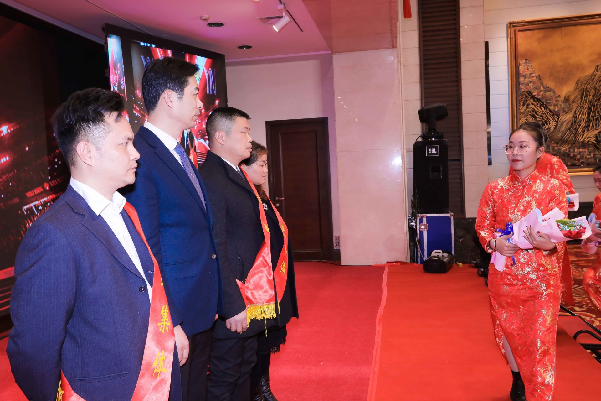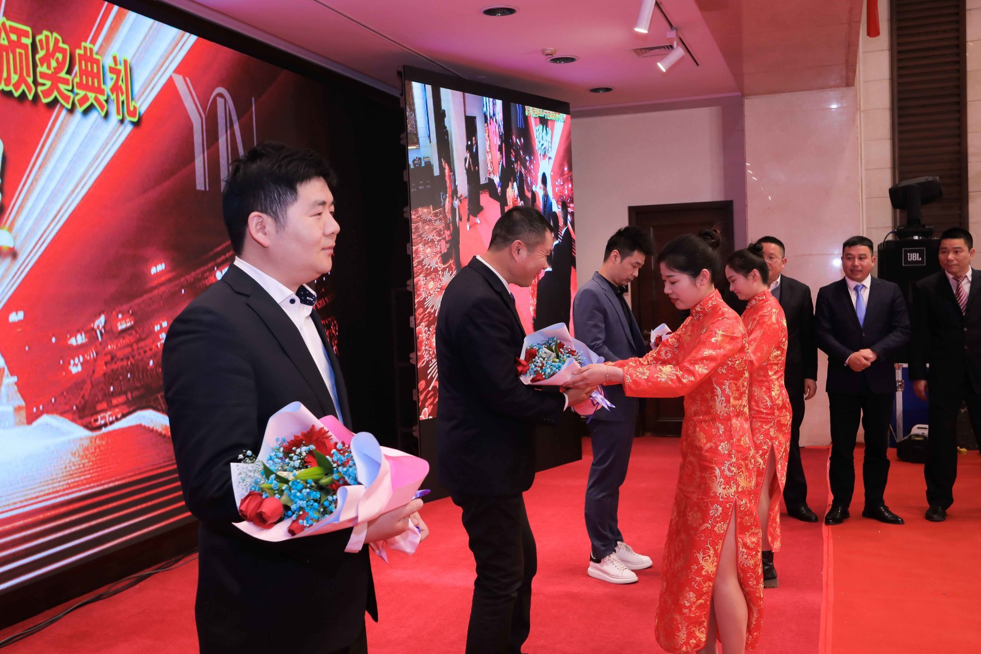 公司礼仪队向上述先进个人敬献鲜花场景