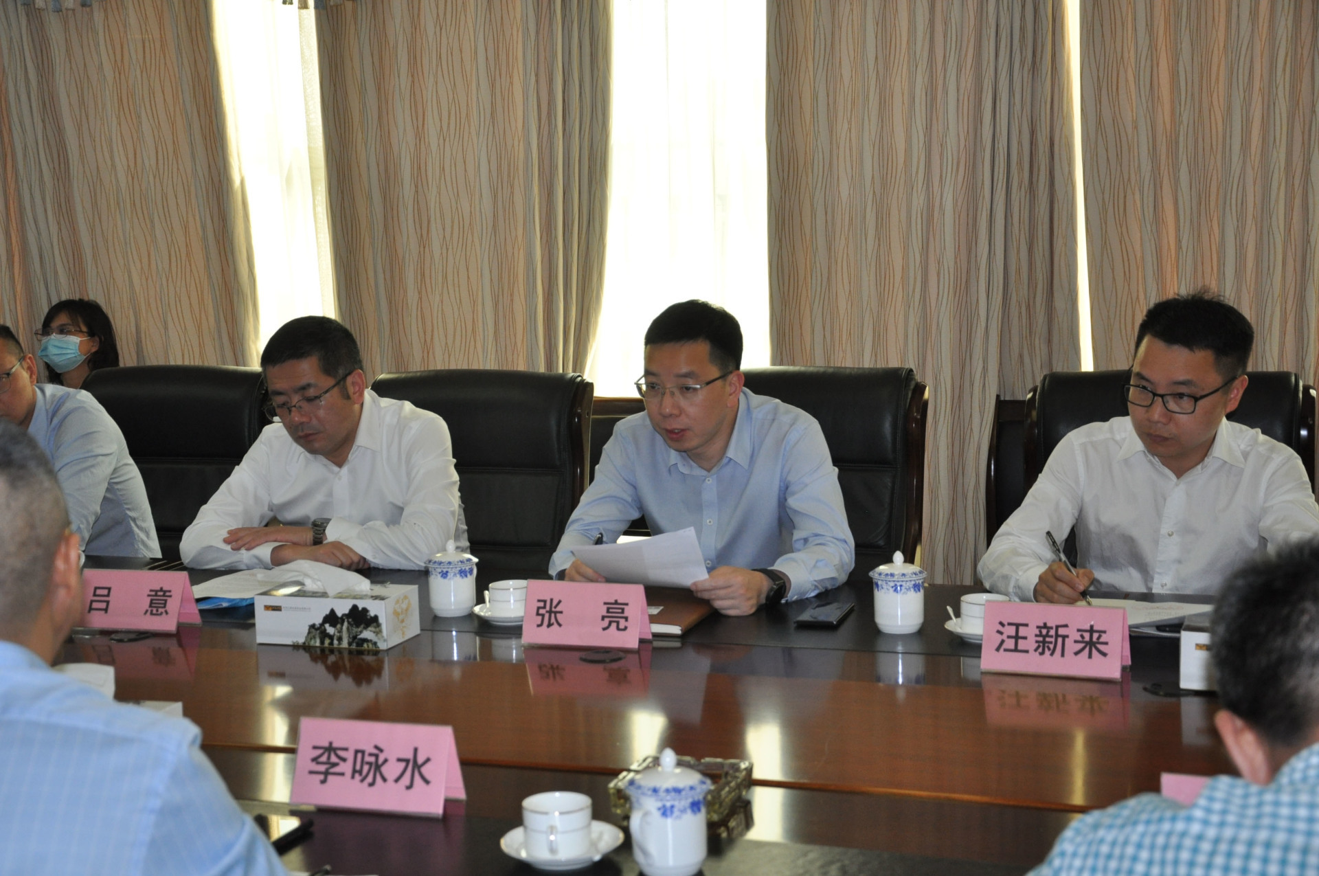 李咏水董事长、李飞烨总司理向张亮副区长一行汇报企业情形