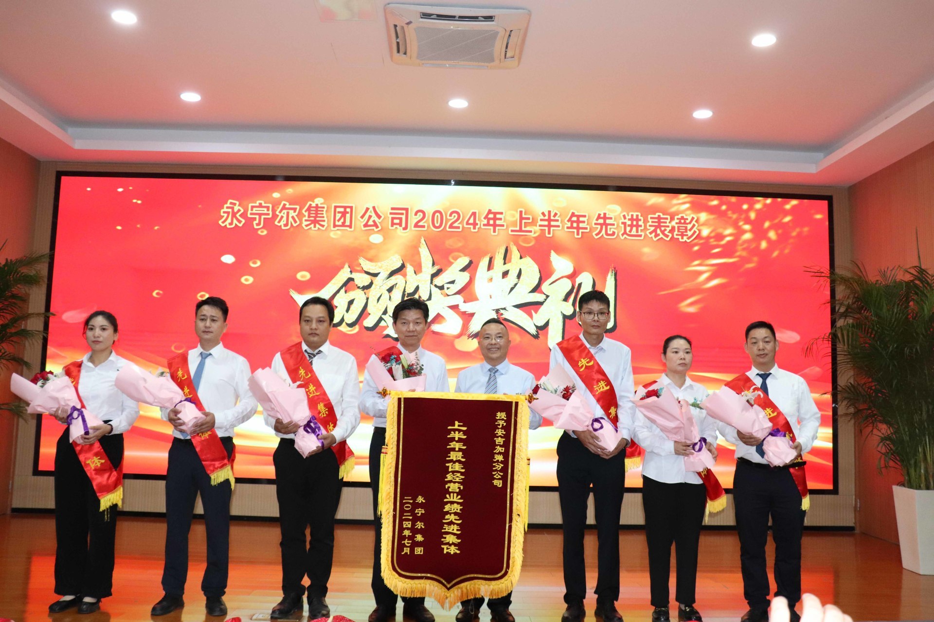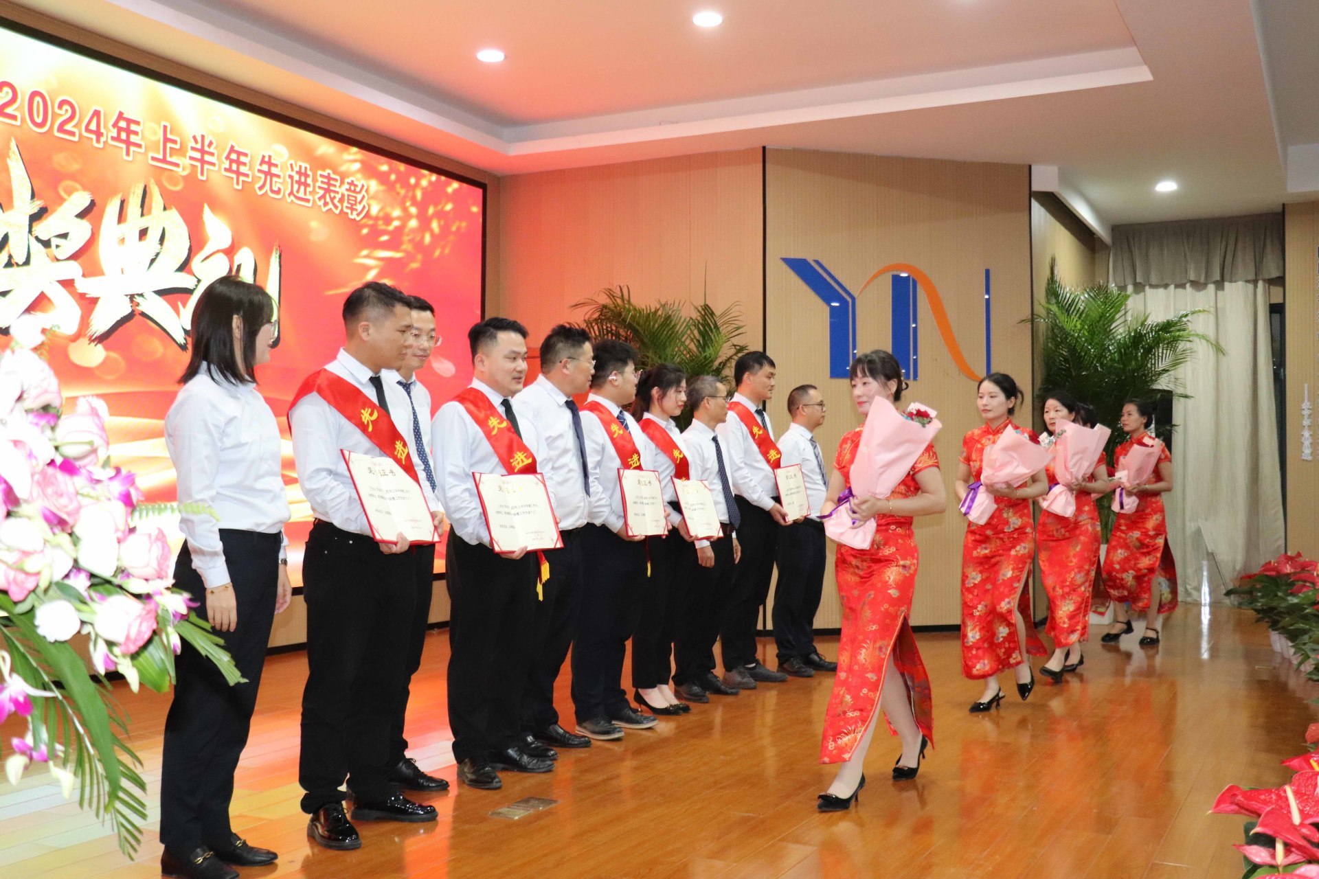 2024年上半年销售事情先进个人接受公司表扬并与所属分公司总司理合影