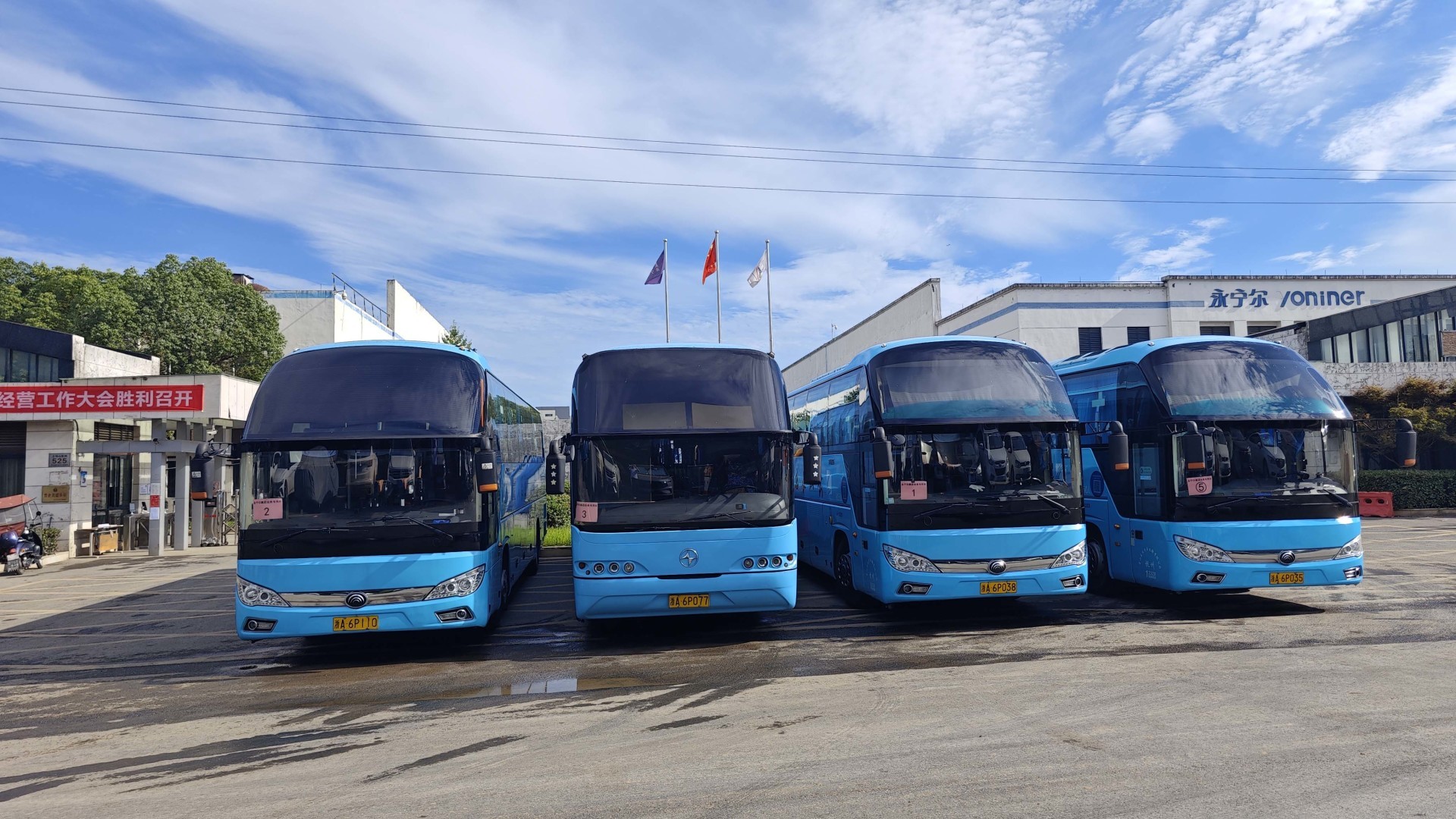 集团总部聚会代表乘坐大巴抵达安吉基地